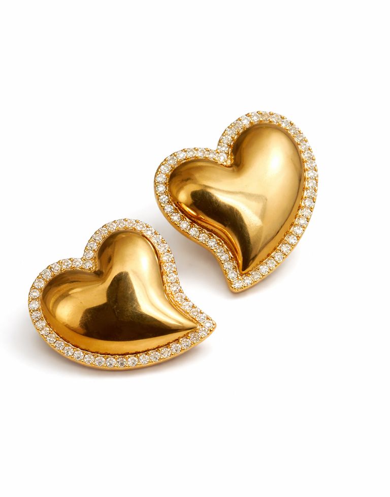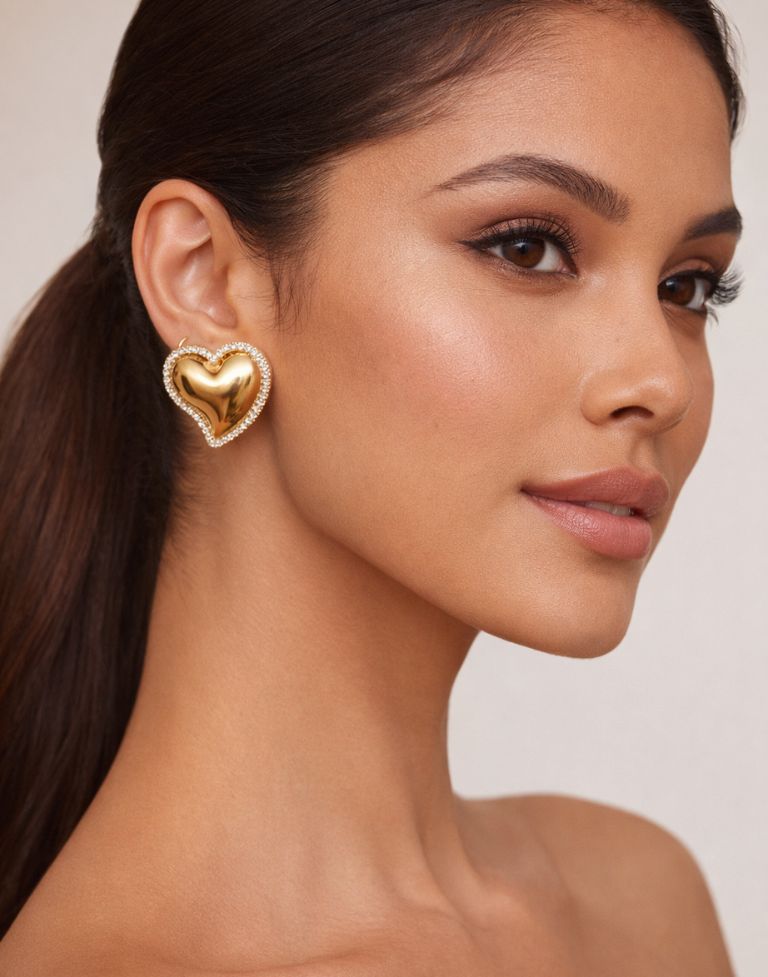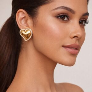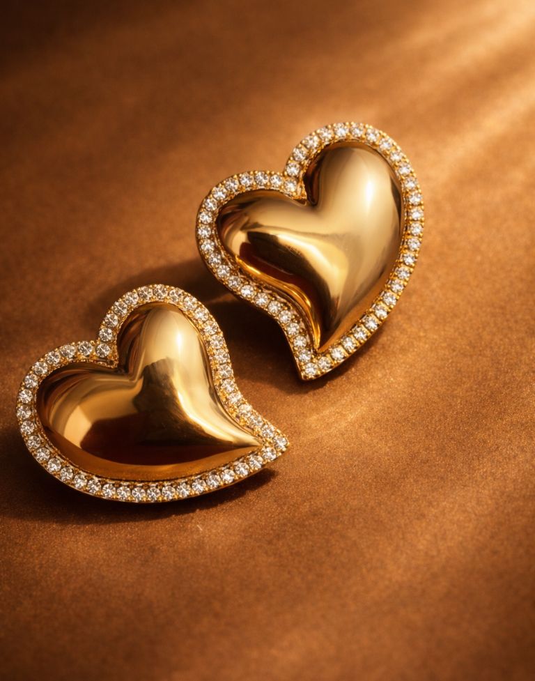 Beautiful puffed heart-shaped studs with a sparkling American diamond border, designed for a classy and modern look.