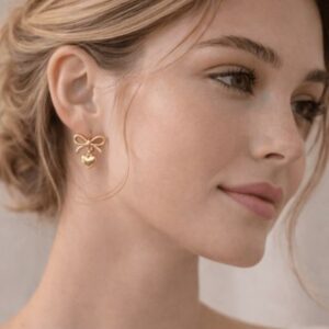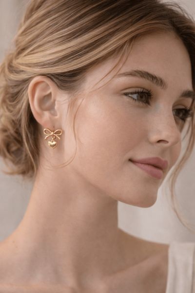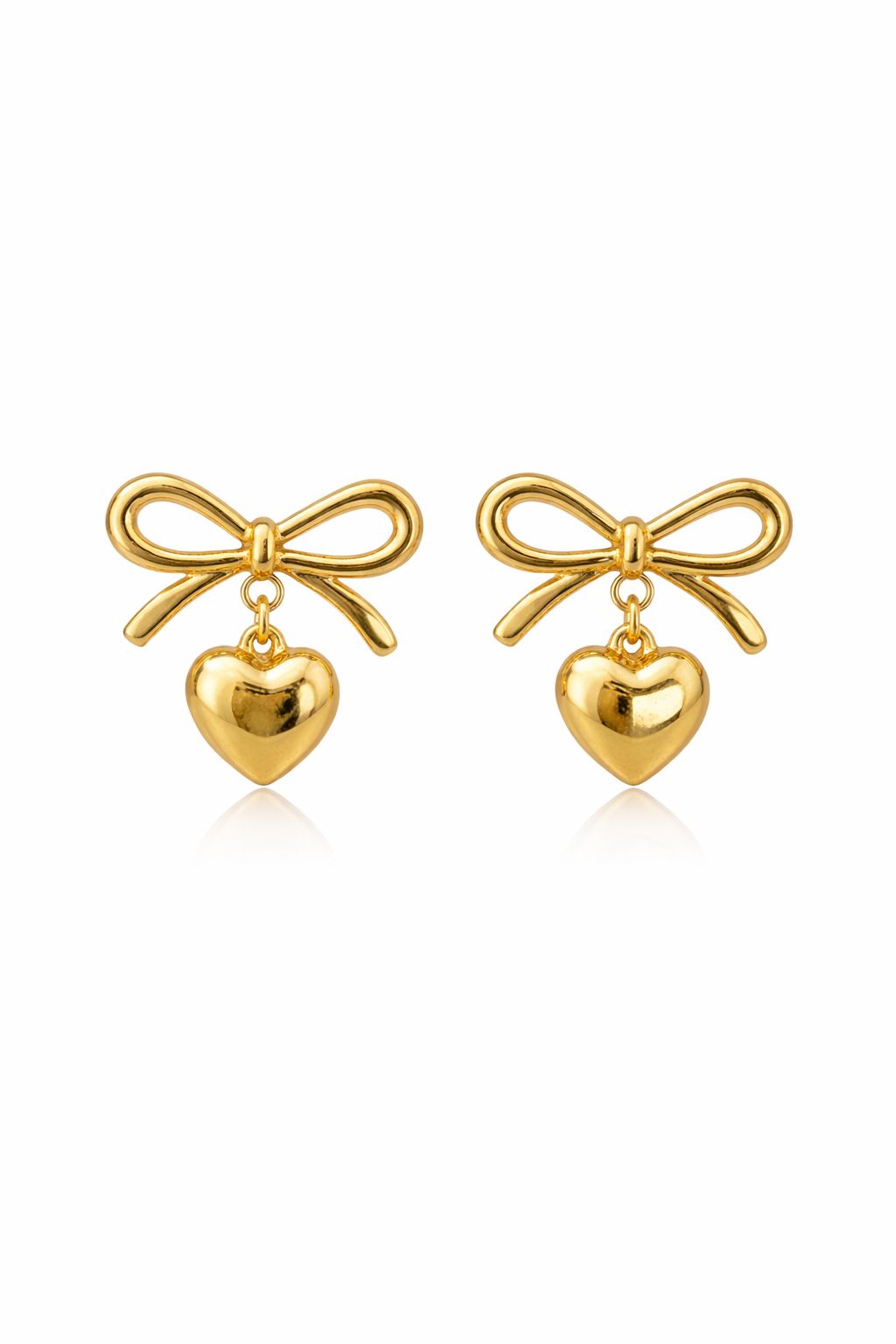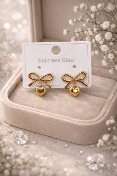 Gold Bow Heart Stud Earrings – Stainless Steel Minimal Jewellery