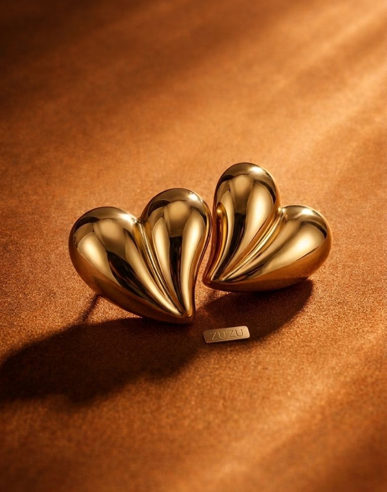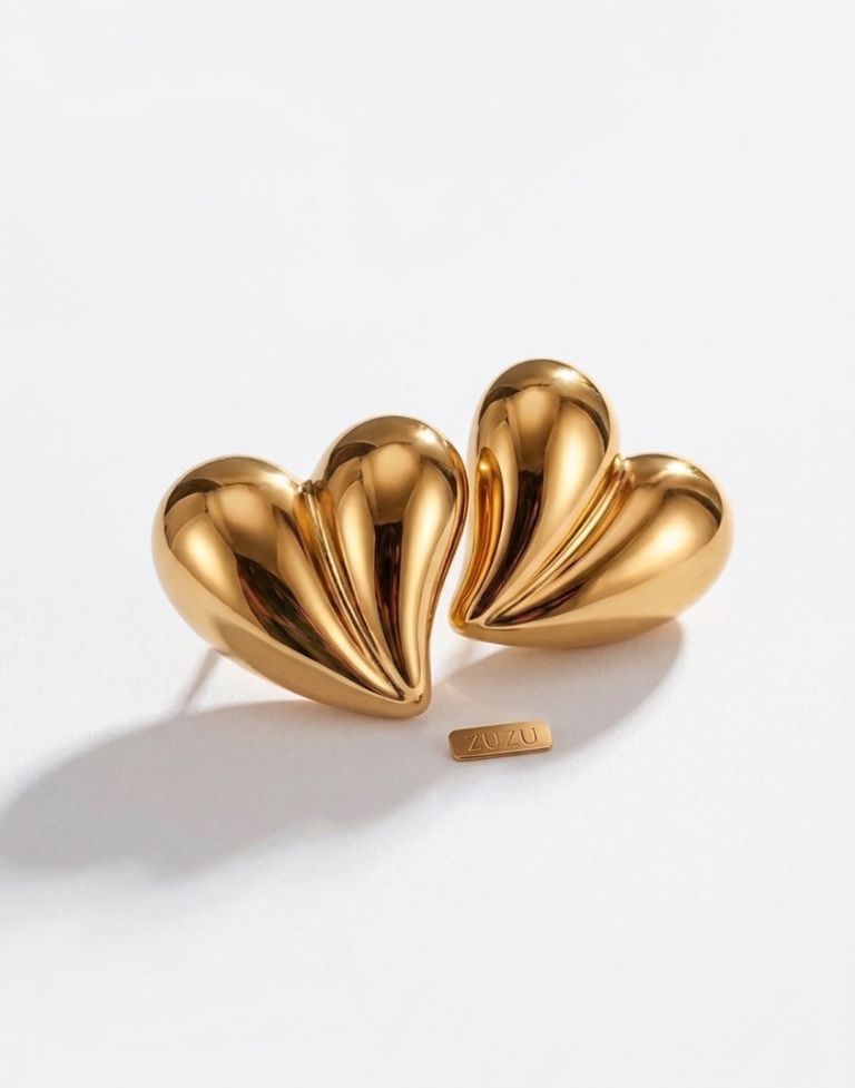 Stylish chunky heart-shaped earrings with a smooth, high-polish finish that adds a bold yet elegant touch to your look.