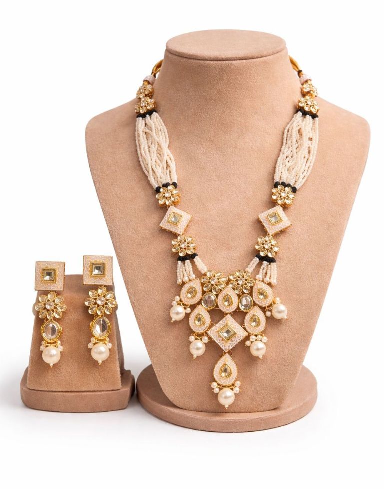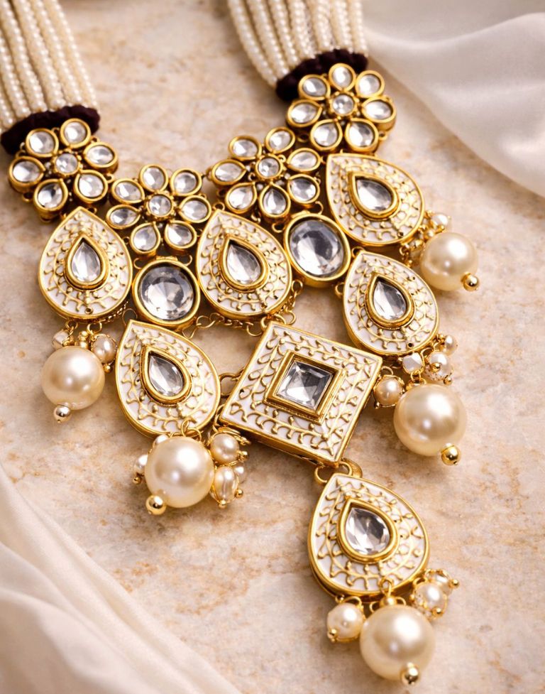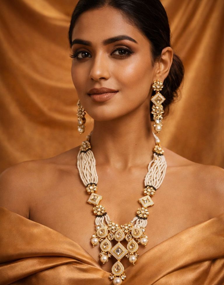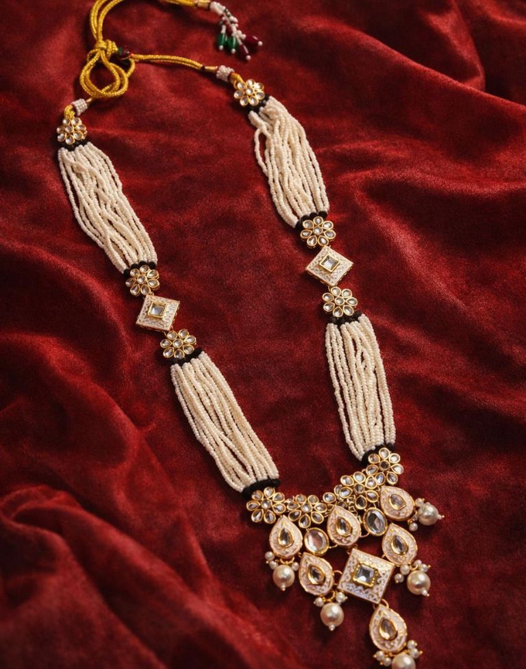 Moti Beads Necklace Set for Women – Traditional Kundan Pearl Choker with Matching Earrings