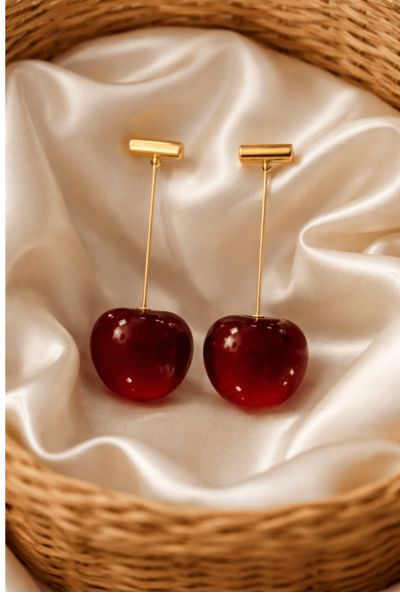 Glossy cherry-red drop design