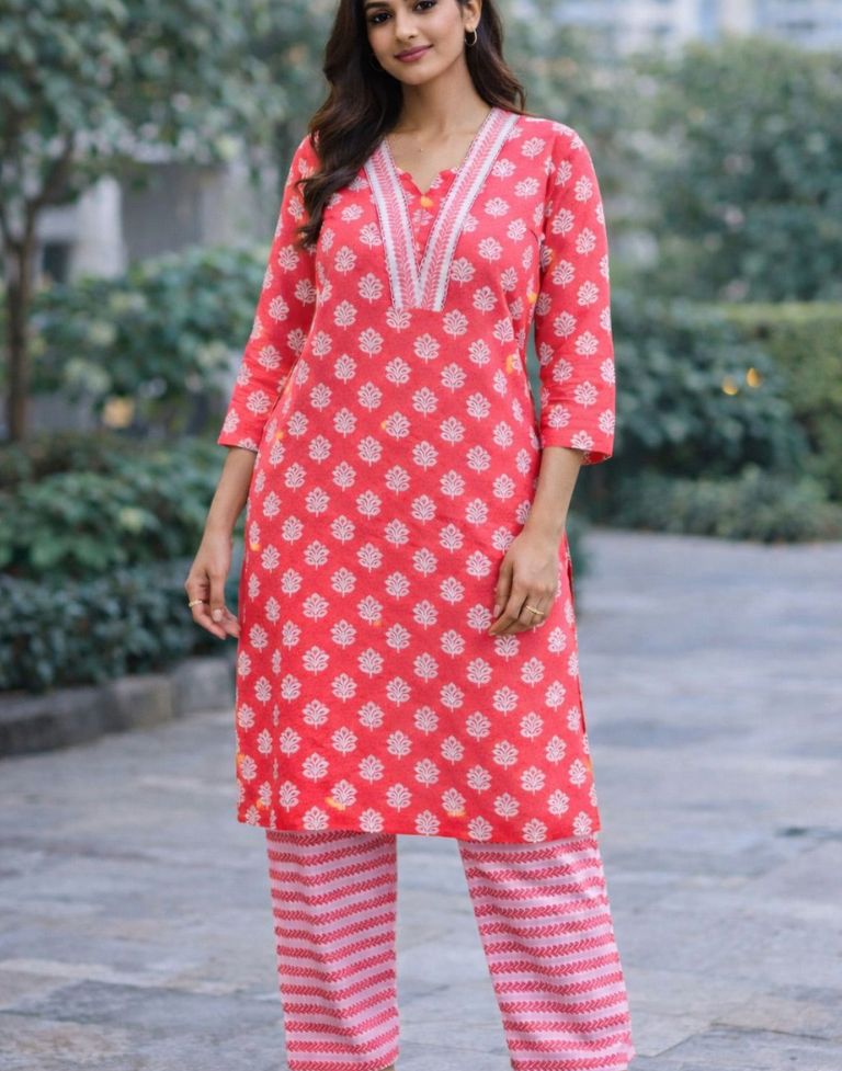 2-Piece Set – Includes 1 Straight Kurta + 1 Printed Pant