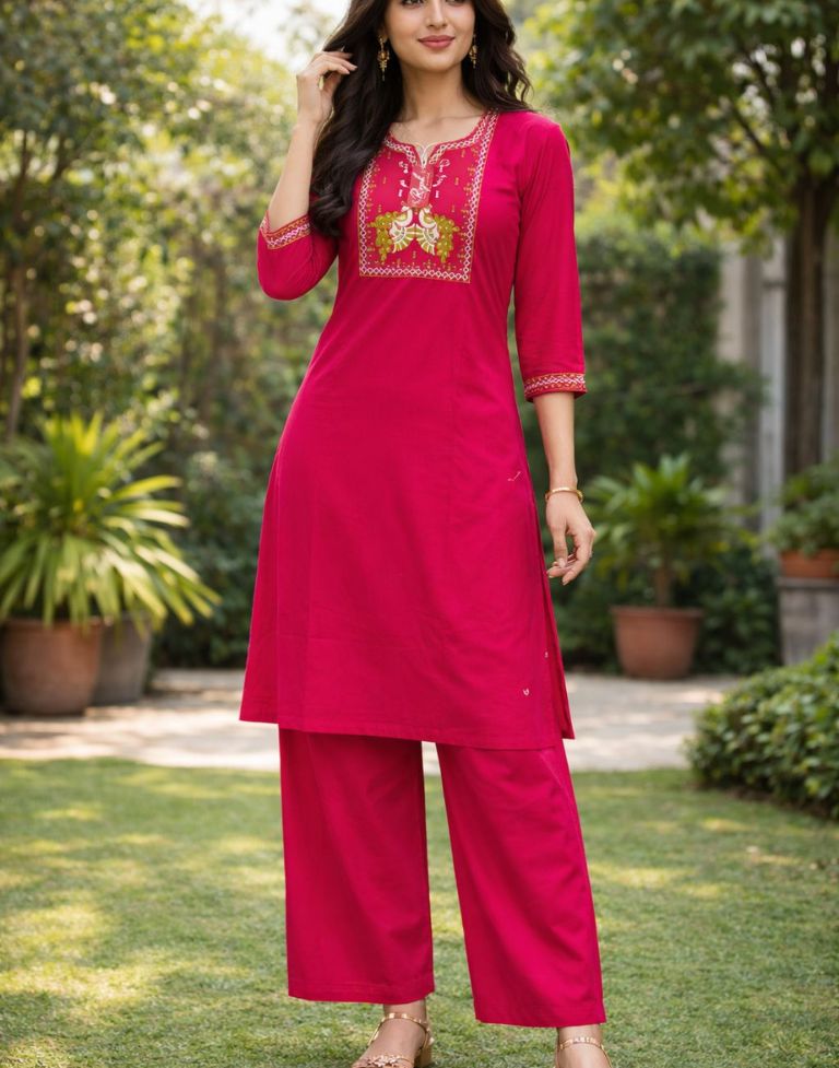 Includes a straight-fit kurta and matching pants for a coordinated, polished outfit.