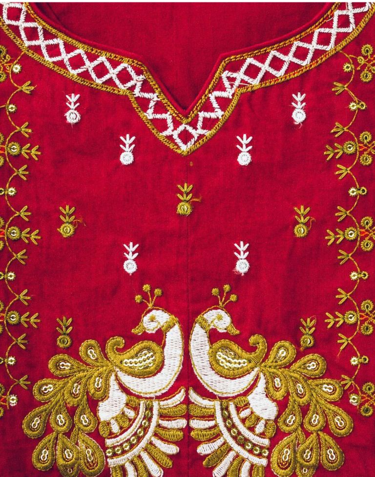 Beautiful embroidered detailing on the yoke and sleeve cuffs adds a traditional yet modern touch.