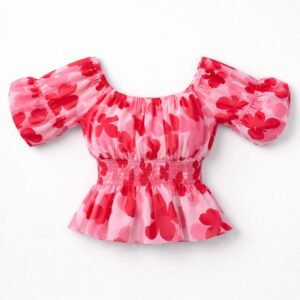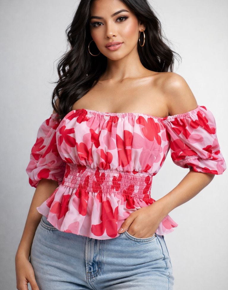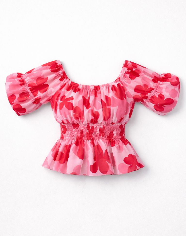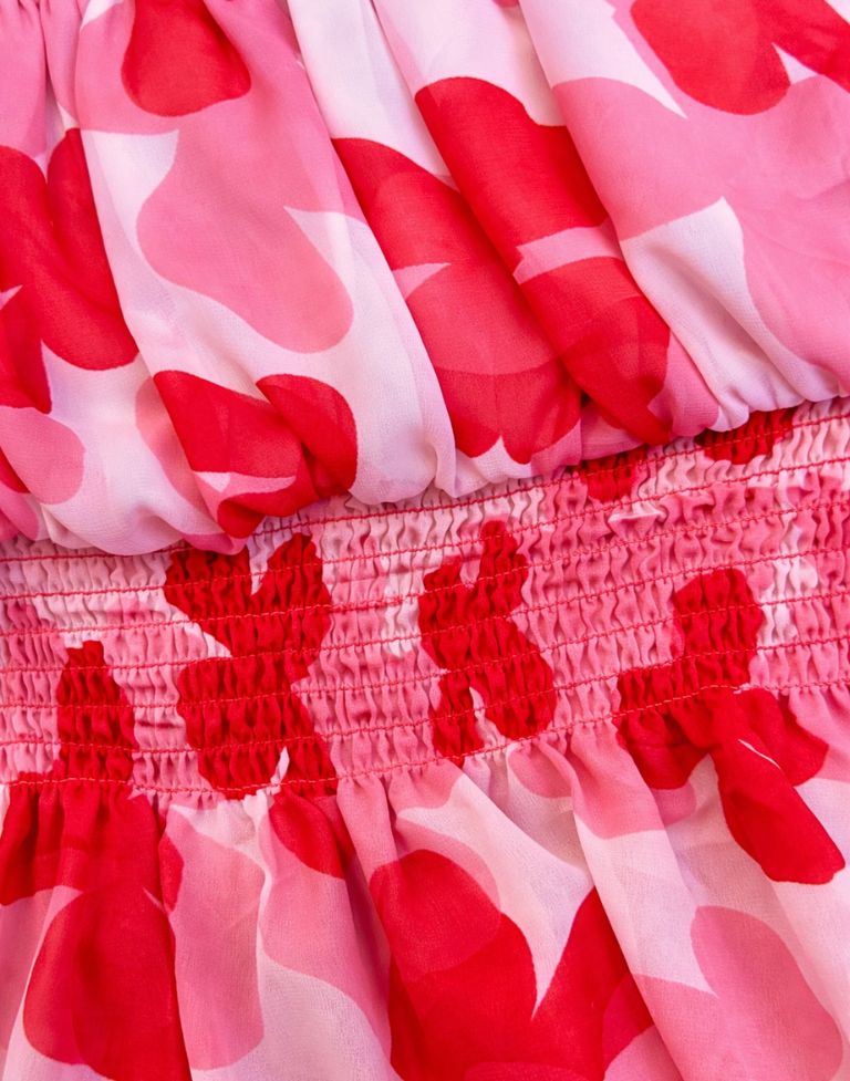 - Eye-catching pink and red floral print
